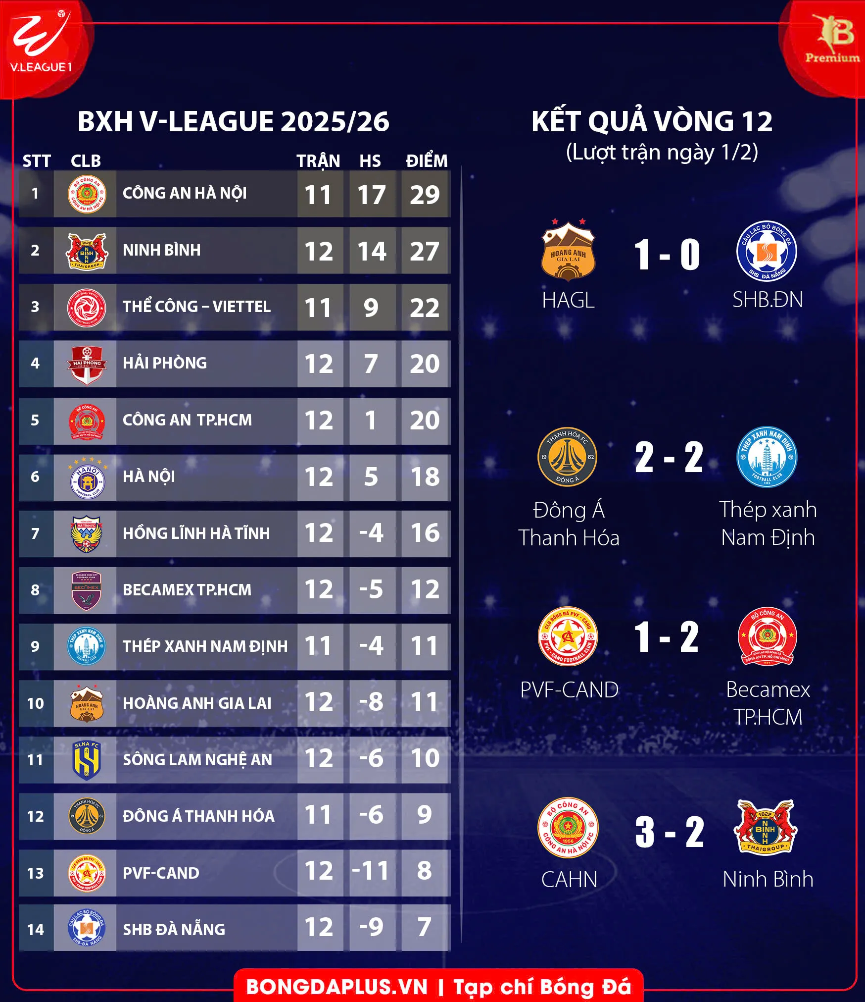 Chung cuộc, Công an Hà Nội giành chiến thắng 3-2 đầy thuyết phục. Kết quả này giúp họ chính thức soán ngôi đầu bảng từ tay Ninh Bình, đồng thời chấm dứt chuỗi 36 trận bất bại ấn tượng của đội bóng đất Cố đô.