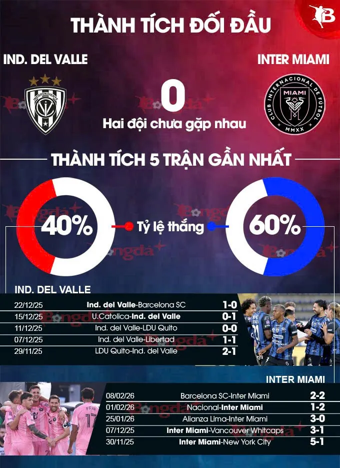- Tổng bàn thắng chẵn: 7/10 trận gần nhất của Ind. del Valle và 6/9 trận vừa qua của Inter Miami kết thúc với tổng số bàn thắng là số chẵn.